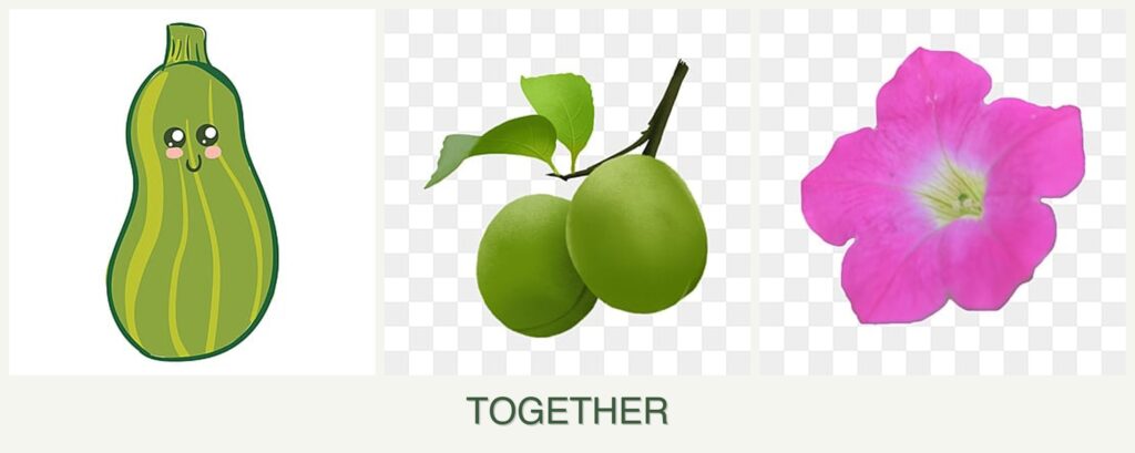Can you plant zucchini, plums and petunias together?