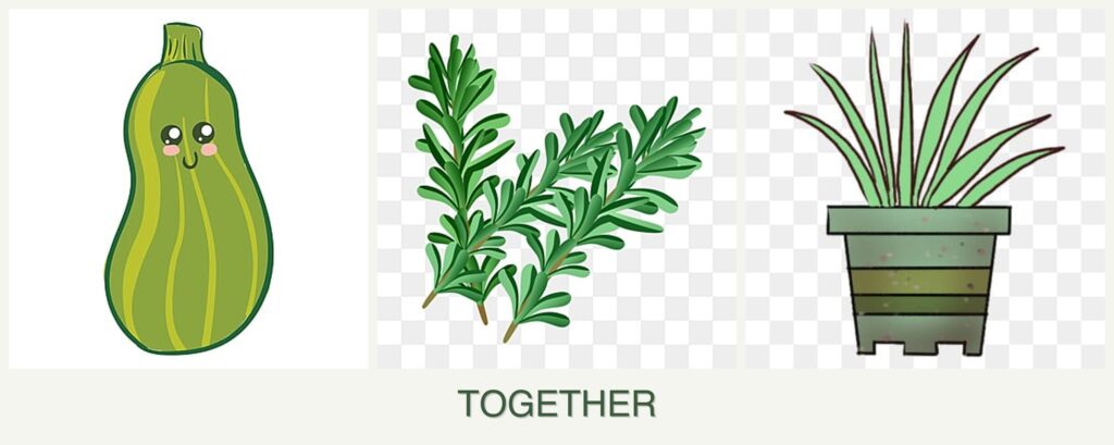 - Rosemary prefers well-drained soil and can tolerate drier conditions, making it a good companion for zucchini by not competing for water.