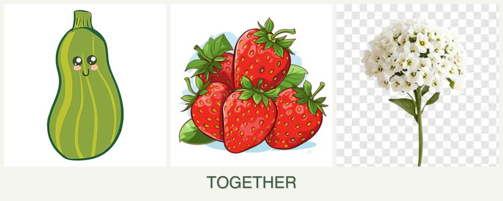 Planting zucchini, strawberries, and alyssum together offers several advantages: