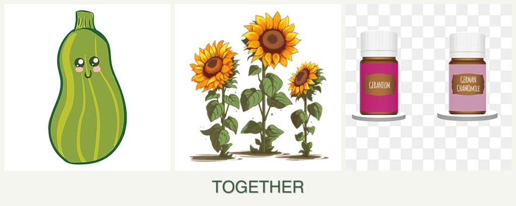 Planting zucchini, sunflowers, and geraniums together offers several advantages: