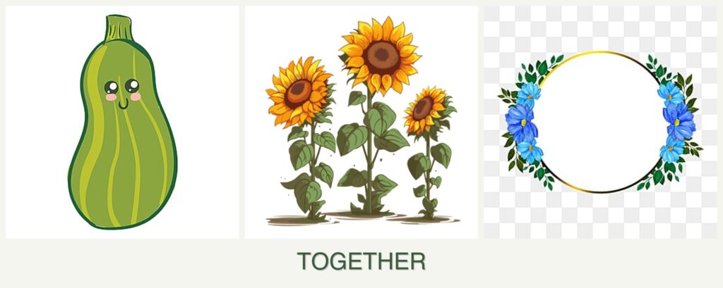 Planting zucchini, sunflowers, and zinnias together offers several advantages: