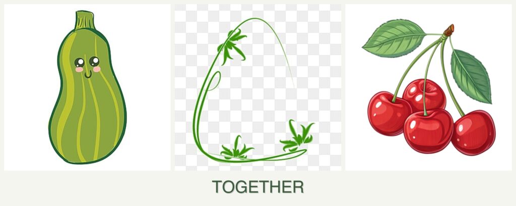 Resource Competition: Zucchini and cherries both require substantial nutrients, potentially leading to competition.