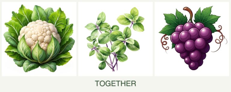 Can you plant cauliflower, oregano and grapes together?